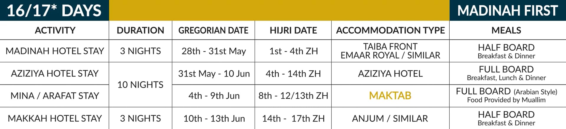 Diamond Hajj package category B is a 16/17* day journey is a luxury hajj package. You stay closest to Haram, enjoy delectable full-board meals, and benefit from expert guidance by religious scholars. You gain an unparalleled pilgrimage experience.