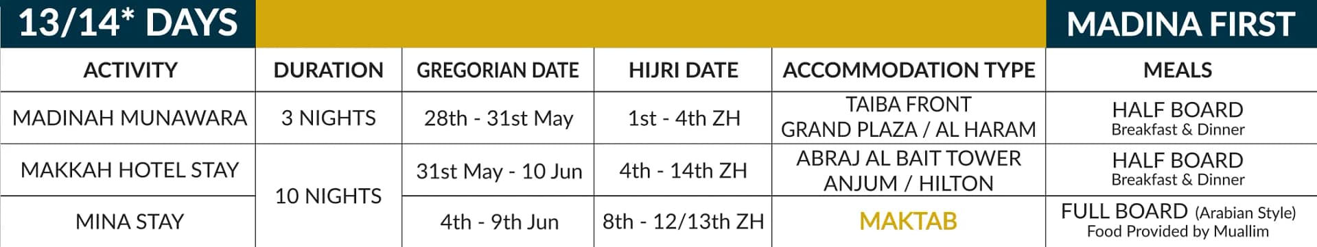 Executive Hajj package category B is a 13/14* day journey is a luxury hajj package. You stay closest to Haram, enjoy delectable full-board meals, and benefit from expert guidance by religious scholars. You gain an unparalleled pilgrimage experience.